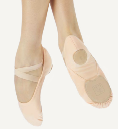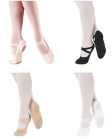 Ballettschläppchen aus Stretch-Leinen (ohne Durchziehgummi!) mit geteilter Ledersohle