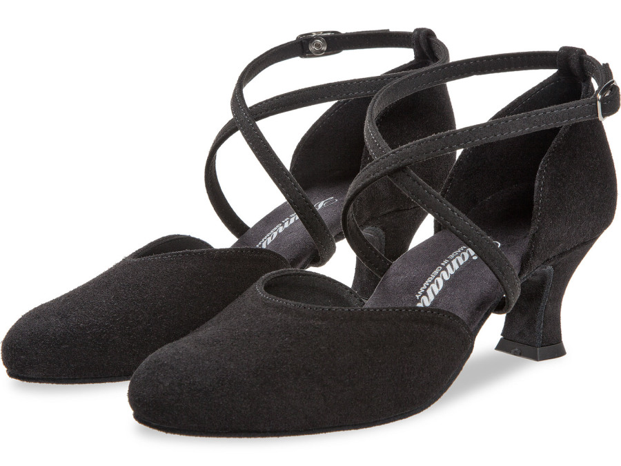 Damen Tanzschuhe Weite E½ Normalweite, Flare Absatz 5 cm schwarz Glattleder mit neuer Vario Spin Laufsohle (besonders griffig auf glatten Böden, für drinnen und draußen, keine Streifenbildung)